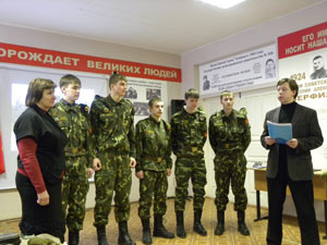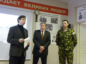 - Сегодняшняя встреча должна стать началом еще одного большого дела, - сказал он. - Год назад благодаря сайту солдат.ру мне посчастливилось начать переписку с директором школьного музея из г. Нефтекамска (Татарстан). Эта школа носит звание Героя Советского союза Никиты Кайманова. Каймановская застава стала известна в 41 году. Военные историки недаром называю ее «Северным Брестом». На границе северной Карелии она 19 суток удерживалась с боями на советско-финской границе в Карелии, из них 14 суток в окружении. Из 146 пограничников заставы Кайманова более трети были представлены к орденам и медалям, а сам Никита Кайманов в августе 1941 года был удостоен звания героя Советского Союза. Сейчас наградные листы военных лет размещены на сайте www.podvignaroda.ru. Это воистину хроника подвига первых военных лет.