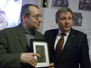 - У нас сложилась традиция, – продолжил Олег Гуреев.- Когда встречаемся с коллегами-поисковиками, то в знак благодарности дарим отрядам вот такой знак. Это Святой воин – копия с барельефа Дмитриевского собора г. Владимира. Святого воина мы передаем сегодня поисковому отряду «Демянск», журналу «Военная археология» и нашим друзьям поисковикам из восточной Европы.