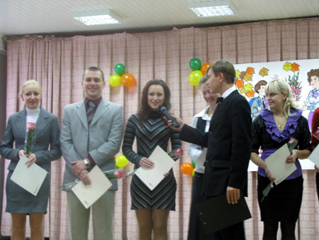 Празднование дня учителя в этом году растянулось. В пятницу своих учителей поздравляли ученики, а в понедельник 5 октября в Центре детского творчества г.Александрова - поздравляли глава района В.П. Коркин, начальник Управление образования И.К. Сергеева, депутатский корпус, главы администраций. В этом году в день учителя Александровский район награждал своих педагогов, удостоившихся государственной награды - звания «Почетного работника общего образования РФ».